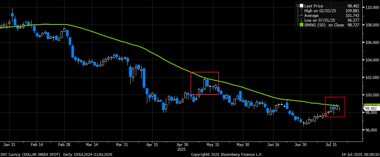 Two Trades to Play For a Weaker US$ After the Rally Into Resistance Jeff Jacobson July 20, 2025 7:00 PM